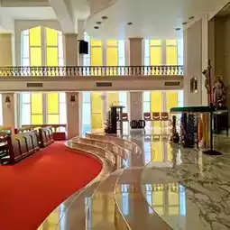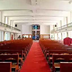 The interior of the church is simple and solemn. Sit quietly and pray here to enjoy a moment of tranquility and relax your mind.