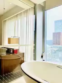 The hotel continues the Grand Hyatt tradition with attentive service. The lobby manager is very friendly and proactively chats with guests about life in Macau, making you feel like friends. The hotel rooms show some signs of aging, but considering the price, it's a good choice. The rooms are spacious, the bathrooms are very roomy, and the views are quite open. The facilities, including the gym and spa, are very well-maintained. The pool view is also very open, making it a great value for money. However, there are areas for improvement, such as the rain stains on the room's glass curtain walls and the need for hardware upgrades. Overall, it's a high-value choice for families in Taipa.