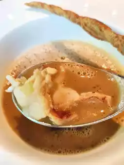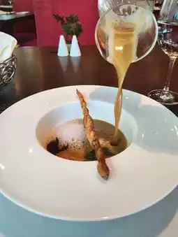The set menu offers a variety of choices. For the appetizer, I chose 🦞lobster bisque with raw lobster slices, celery, and ginger butter. The waiter pours the lobster bisque in front of the guests, and the flavor is very rich, with finely chopped celery adding a crunchy texture.