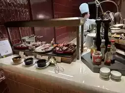Macau Londoner Hampton Count is located on the 2nd floor of the Macau Londoner Hotel. It is a culinary paradise that combines delicious food with an elegant environment. Here, you can enjoy both buffet breakfast and buffet dinner, making it an excellent place to indulge in gourmet food. Notably, the breakfast service extends until 1 PM, allowing you to enjoy your meal leisurely.