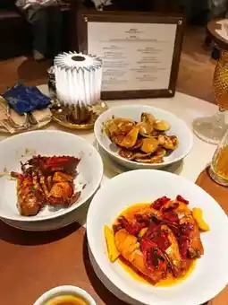 The average price per person is MOP900+, but the **Buddha Jumps Over the Wall** + **all-you-can-eat lobster** + **free-flowing beer** are worth it! #gout also eat #Macau all-you-can-eat #Hamp Court #Macau buffet