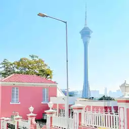 📍 Navigate to Yi Wan Slope Alley, get off the car and be surrounded by beautiful scenery. Cross the road and you can see the super cool Macau Tower.