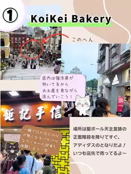 Most people who travel to Macau visit the Ruins of St. Paul's. The standard tourist route is to walk slowly down the cobblestones from there to the Fountain Square while looking at the cityscape. 😻 Kuroneko also walked there with Shironeko in April. 👬 If you want to eat your way around, Kuroneko Shironeko recommends this place! I'll tell you where it is😻