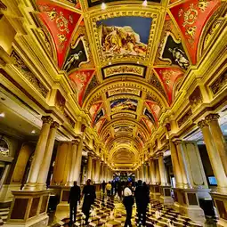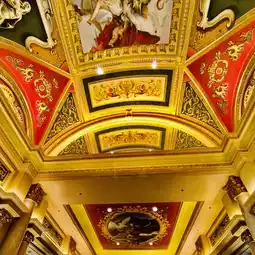The appearance here is like a magnified corner of Venice, with spires, arch bridges, and the Grand Canal, it is breathtakingly beautiful. As soon as you enter the lobby, it feels like you have traveled back to the Renaissance. According to statistics, there are 22,200 murals here, most of which are from the Venetian school of painting. Looking up at the dome of the lobby, those huge paintings make people feel as if they have traveled back to the Italian Renaissance. Each painting is full of artistic beauty.