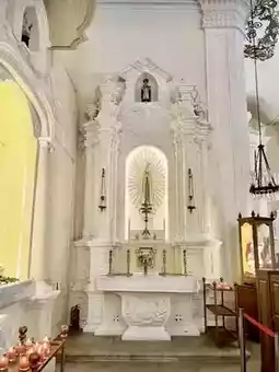 Strolling around the Ruins of St. Paul's, the Church of Our Lady of the Rosary exudes elegance and tranquility amid the bustling streets. As you approach this centuries-old church, the Baroque yellow exterior walls sparkle in the sun, softly reflecting the warmth of time. Pushing open the heavy wooden door, a solemn and quiet atmosphere hits you. The wooden pews inside the church are neatly arranged, and the vaulted ceiling is soaring yet warm, making people feel safe. The most eye-catching is the altar in the center. The pure white and gold decorations set off the statue of the Virgin Mary, emitting a holy light. The patterns on the stained glass windows reflect fragments of biblical stories. Under the sunlight, colorful light and shadows are cast on the ground, as if you are in a sacred dream. Sitting on the bench, I closed my eyes and listened to a melodious hymn, feeling the peace and cleansing of my soul. Our Lady of the Rosary Church is not only a church, but also a quiet place where people can escape from the hustle and bustle of the world and return to their inner selves. When I walked out of the church, my heart was filled with warmth and emotion. The rose-like fragrance seemed to quietly seep into my heart and linger for a long time.