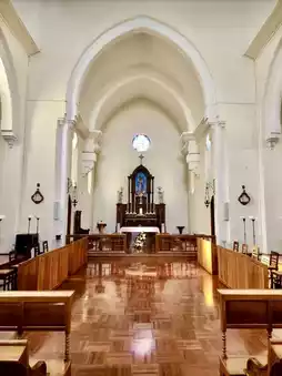 Walking up the winding path, you enter Bishop Hill, where the air is filled with the faint scent of leaves. The chirping of birds occasionally echoes through the forest, creating a natural symphony with the sound of footsteps. As the chapel comes into view, its white walls contrast beautifully with the blue sky and green trees, simple yet sacred, like a silent poem. Inside the chapel, sunlight streams through the stained glass, casting colorful shadows. The serene space exudes a strong religious atmosphere. Every carved detail on the walls is exquisite and ancient, seemingly carrying the prayers and blessings of countless believers. Looking out the window, you can see the entire cityscape of Macau, with the old town's red-tiled white walls connecting to the distant blue sea, picturesque and beautiful. At dusk, the setting sun bathes the entire chapel in a soft golden hue, making time seem to stand still in this pure land, leaving a sense of peace and emotion in your heart, making it hard to leave.