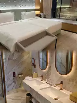 As soon as I opened the door, wow! 😍 The modern, minimalist yet cozy design perfectly matches my aesthetic! 🎨 The large floor-to-ceiling windows let sunlight stream in, brightening up the entire room and instantly lifting my spirits! 🌞💡 The bedding is so soft, it feels like being surrounded by clouds, ensuring a good night's sleep! 🛌💤