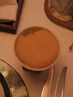 It is chestnut chicken soup with fried king flower, the soup is thick and smooth.