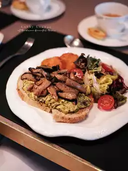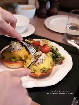 Another option is to go to the Lobby Lounge—the Benedict + Chicken Porridge is highly recommended
