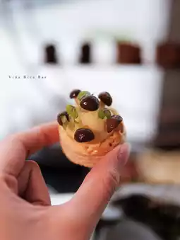 The base of the cake is moist and the coffee powder is not very strong