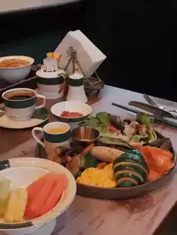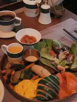 Homemade croissants • Sautéed seasonal vegetables • Smoked salmon •