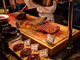 Macau JW Marriott Urban Kitchen Dinner has lobster claws, shrimp, various seafood, sashimi, and sushi.