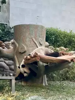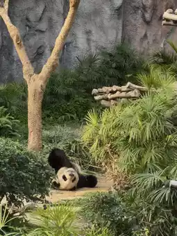 There is also one leaning against a tree scratching its back, it looks so cute 🐼🌳