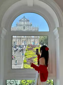 From sunrise to sunset 🌅 Measure every inch of Macau's romance with your feet! The upward angle shot under the Ruins of St. Paul's is simply divine, with the sun shining through the cracks in the archway, and any casual shot looks like an epic blockbuster; you must take a selfie in front of the pink wall of Love Lane, the Portuguese tile floor is the perfect filter!