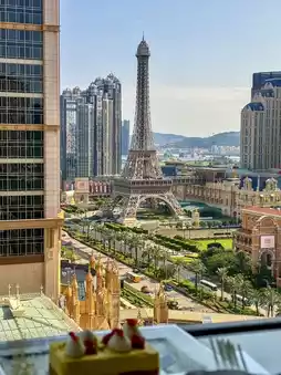 The hotel is seamlessly connected to major attractions like The Londoner Resort, Venetian Macao, and Parisian Macao. Guests enjoy easy access to shopping at The Parisian’s luxury boutiques, dining at Michelin-starred restaurants, and entertainment venues. The property’s proximity to Macau International Airport (15-minute drive) and complimentary shuttle services further enhance convenience!