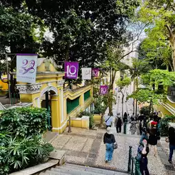 Turning into a branch road from Fengtang Alley, the sight before you is amazing. The narrow streets are paved with exquisite mosaics, and steps are built in an orderly manner on the slopes at the intersections. The buildings and walls on both sides are painted in Macau’s unique bright yellow color, shining brightly in the sun. Albergo San Luis is not only a great place to take photos, but also a great place to experience Macau’s history and culture.