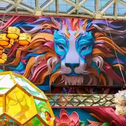 This time we found a great camera position with few people and great filming potential! The sun is pouring down from the Skydome Square. The giant flower installation is matched with fresh flowers. The colors are so gorgeous that you will be captured at first sight. Turning around, you will be shocked by the giant screen. The lions are hiding in the dense forest, with lifelike dynamic effects. Who understands this kind of visual impact😭!
