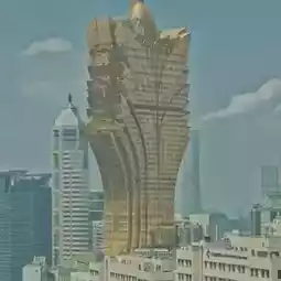 The huge Grand Lisboa building comes into view