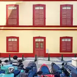 📍Yi Wan Slope Alley: Who would have thought that the color scheme of the Macau SAR Government Headquarters is so girly 💕! The seaside path with the clear sky is full of Japanese style. Every photo is a screen saver-level beauty!