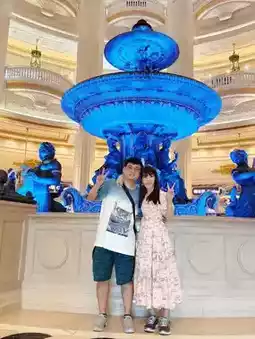 The lobby is opulent and majestic, incorporating many elements of the French Palace of Versailles. The entire hotel is filled with a delightful perfume scent, the air conditioning is strong, and the service is excellent. Although the standard check-in time is 3 PM, we arrived on an early flight and were able to check in before 1 PM. The staff even delivered our luggage to the room, so we didn’t have to carry it ourselves.