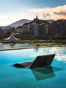 Located on the 2nd floor of YOHO Treasure Island Resort World Hotel, the infinity pool offers spectacular views! You can enjoy a panoramic view of Macau's Nam Van Lake, with distant sights of the Macau Tower, Penha Hill, and Taipa's coastal scenery. Swimming here feels like being completely immersed in beauty—it's pure bliss.
