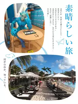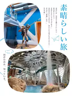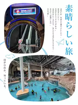 Inside, there are plenty of adorable mascots for photo opportunities, a chance to experience surfing, and relaxing sunbathing moments on the beach 🎁. The outdoor scenery is quite impressive.