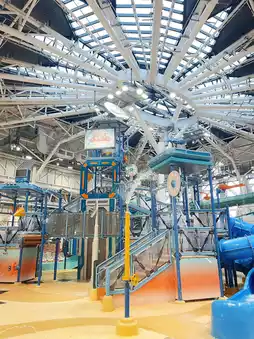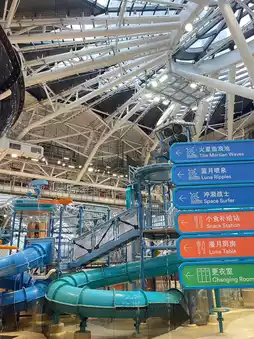The indoor zone is even more impressive! With a space-themed design, you can enjoy water fun no matter the weather 🌌. The "Surf Warrior" lets you experience the thrill of surfing indoors—ideal for those who prefer a more relaxed vibe.