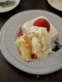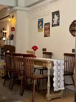 The shop has only three small tables, but every corner is a 'photo spot': a wooden bench by the window with floral cushions, a green plant wall behind the counter complementing the cake plates, and even the restroom door adorned with cute felt decorations. The friendly owner will introduce you to the cakes, made with French Isigny butter, and on weekends, there’s a special 'seasonal fruit tart.' Sitting by the window, watching sunlight dance on the cakes while listening to soft Japanese songs, you might feel as if you’re in Kyoto’s Arashiyama.