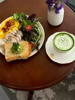 Must-try: 'Japanese Strawberry Cake'! Priced at just MOP 60, it’s a delightful surprise. The sponge cake is moist and fluffy, layered with fresh strawberries and homemade jam, topped with cloud-like whipped cream. The sweetness is perfectly balanced, and the burst of strawberry tartness and creamy richness is unforgettable. The 'All-Day Energy Breakfast' is impressively hearty, featuring sunny-side-up eggs, sausages, roasted tomatoes, and croissants. The croissants are crispy on the outside and soft inside, especially satisfying when spread with cream cheese. The 'Matcha Milk by Koyamaen' is a visual treat! With a perfect blend of rich matcha and fresh milk, topped with matcha powder resembling a thin layer of snow, the gradient colors are mesmerizing as you stir with a straw.