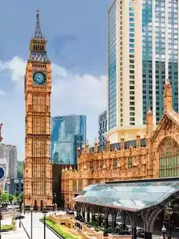 Luxury experience in Cotai: The Londoner Hotel, some rooms include Eiffel Tower or night views.