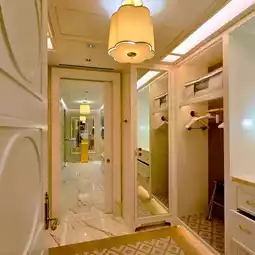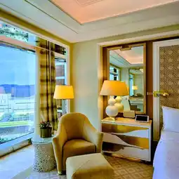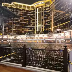 The outdoor pool at Wynn Palace epitomizes ultimate luxury. Surrounded by meticulously designed gardens, the pool area boasts a minimalist and elegant design. The infinity pool faces an artificial lake and the aerial cable cars, offering guests a picturesque view while enjoying the water. This is not just a place for swimming but a serene and aesthetic experience.