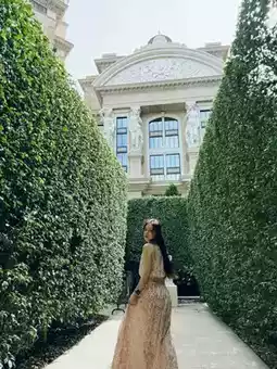 📍Fountain Stairs Stage|The European-style fountain in the center of the garden is equipped with marble stairs. Sit on the steps and shoot upward with the fountain as the background. The halo reflected by the water splashes against the blue sky. Every shot is a French romantic blockbuster~