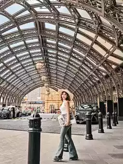 • Pose next to the red telephone booth by the fountain. Pair a plaid coat and beret for an instant British gentleman look.