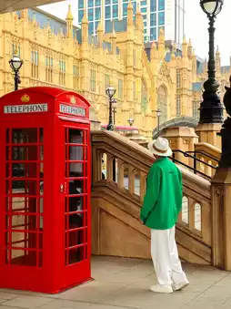 • Red phone booth with night view, wear black system seconds out noble blockbuster