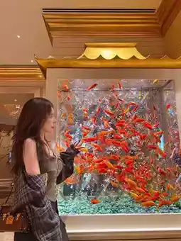 The goldfish tunnel next to the "Lakeside Gallery" in the hotel, the sunlight shines through the dome on the fish, turn on the mobile phone portrait mode to take silhouettes, rich and agile!