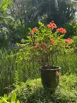 3️⃣ Terrace garden: terrace full of flowers, back to the sea sideways looking back, the atmosphere directly pulled full.