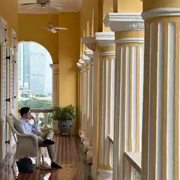 The Rice Hotel is located on the seaside of Taipa, the architectural exterior is mainly blue and white, full of Portuguese classical style, with carved arches, colored glazed windows, as if walking into the old European movie 🎞️ Once you enter the lobby, gorgeous crystal chandeliers, exquisite murals, retro furniture, every detail shows elegance.