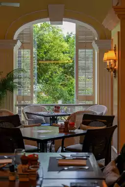 The hotel's English name "Grand Lapa" draws inspiration from Lisbon's famous upscale neighborhood, Lapa. In the center of the lobby, a replica of the renowned artwork "Window of Tomar" is displayed above the staircase. On the second floor, the bar serves delicious tom yum-flavored nuts that are a must-try, and next door is the highly acclaimed Chinese restaurant Kam Lai Heen. By the hotel pool, there's also an excellent Thai restaurant, Tamarind Thai Restaurant.