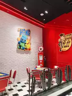 The "Buzz Lightyear Restaurant" on the basement floor of Studio City debuts with a space theme, and there are sci-fi check-in spots everywhere! The colorful neon lights on the wall and the giant Buzz Lightyear model make you feel like you are in the future. The main American classic hamburgers🍔 and crispy fries🍟The hamburgers are juicy and paired with rich cheese, and the fries are fried crispy and full of portions. The restaurant has cool lighting and dynamic music. Whether it is taking photos and checking in or eating delicious food, it is full of fun. Come and experience this trendy restaurant and enjoy the double surprise of food and fun! 🥳🥳🥳
