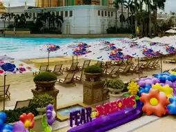 #summerspritz #galaxymacau #galaxyhotelmacau Trade the summer heat for an instant tropical escape right at Galaxy Macau! The Grand Resort Deck has undergone a magical transformation into the captivating FEAR and DREAMS Beach Installation, offering fans the ultimate pre-concert playground. Imagine sinking your toes into soft sand (yes, real-feel sand!), lounging under parasols on comfy beach chairs, all while the iconic sounds of Eason Chan’s greatest hits wash over you. This isn't just a visual treat; it's a full sensory immersion designed to transport you into the heart of Eason's musical universe. Play freely in the refreshing water features to cool down from the Macau sun, snap envy-inducing photos against stunning, thematic backdrops perfect for your feed, and let the powerful soundtrack fuel your excitement. Feel the concert vibes early as you listen to Eason's songs filling the air, maybe even practicing your favorite lyrics! It’s the perfect spot to chill, recharge, and fully embrace the FEAR and DREAMS atmosphere. This dreamy beach oasis is your exclusive invitation to connect with the music and fellow fans. So, let's amp up the anticipation together!Make your summer unforgettable – visit the FEAR and DREAMS Beach Installation, soak up the unique vibes, cool off, sing along freely, and get perfectly primed for the epic concert experience awaiting us. Don’t just wait for the show; start living it now!