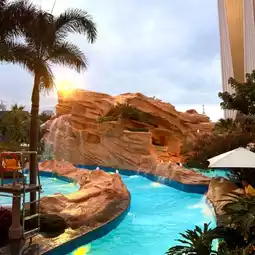 🌊 Featured experience: The world's longest 575 meters aerial rapids, white sand beach and sky waterfalls, children can rent colorful swimming circle rafting, parents lie on the artificial beach to drink iced coconut. Free unlimited admission for hotel guests!