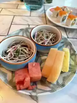 Semi-buffet salads🥗, fruit🍉 dessert options are also plenty, there are about four salads and fruits to choose from, as well as a small amount of cheese and roll sushi. There are about eight desserts, the most outstanding of which is Tiramisu. Tiramisu has a small amount of alcohol also has coffee ice 🤤 Unfortunately too full, otherwise could have eaten a few more