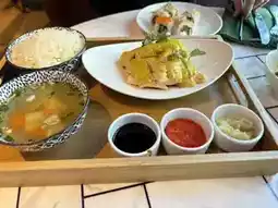 There are about 10 choices of main dishes, we chose Hainanese chicken rice and double cheese beef burger 🍔, the burger portion is relatively larger plus french fries 🍟, normal food will be more difficult to eat all 🤣🤣 Hainanese chicken portion normal chicken is smoother, with the soup is lighter!