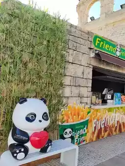 Macau isn't just known for its casinos and beautiful architecture. 💫 On this trip, we were strolling around Macau Fisherman's Wharf when we suddenly spotted a cute panda 🐼💕 sitting in front of a French fries shop 🍟. It's become a popular check-in spot, a must-see for many.