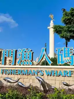 📸 The atmosphere around Fisherman's Wharf is incredibly chill, with restaurants, cafes, and plenty of photo opportunities. 🎶 It's especially beautiful in the evening, with the lights and sea views. 🌅 If you ever visit Macau, we highly recommend stopping by here. You'll see a panda waiting to greet you, just like we did. 🥰✨ If you've seen one, let's chat! 💬