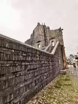 The remains of the church's portal, which stands 23 meters high and 25.5 meters wide, are designed in the Baroque style, a harmonious blend of Western and Eastern art, evident in its carvings featuring both Christian symbols and Chinese elements.