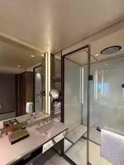 Pushing open the room door, you'll feel the bustling activity outside the floor-to-ceiling windows during the day. At night, the floor-to-ceiling windows reveal a scene of dazzling luxury and extravagance. The room's custom bedding and fragrance will make you feel a sense of belonging, unparalleled relaxation, and comfort.