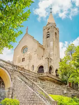 Located on the hilltop with panoramic views of Macau; benches by the sea offer views of Macau Tower.