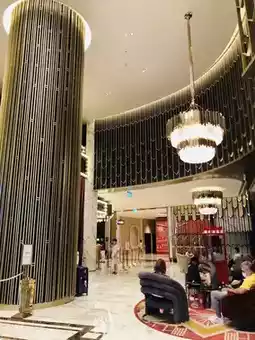 Stepping into the lobby of Studio City Macau is like stepping into a dreamy photo-op paradise. The spacious space is filled with meticulously designed art installations, most notably the giant "mailbox" in the reception area, shaped like a retro movie lens. This creative display captivates visitors and invites them to stop and take photos.