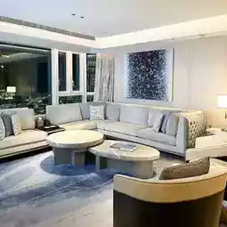 #Macau The room, paired with deep turquoise and gold throw pillows, creates an ambiance of understated luxury. The warm lighting, dark wood floors, and exquisitely patterned carpet all demonstrate the designer's meticulous attention to detail. The room also features a separate dining area and a spacious workspace, perfect for both business and leisure. I particularly loved the openwork metal screen in the center of the living room, which cleverly divides the space and adds a touch of Oriental charm.
